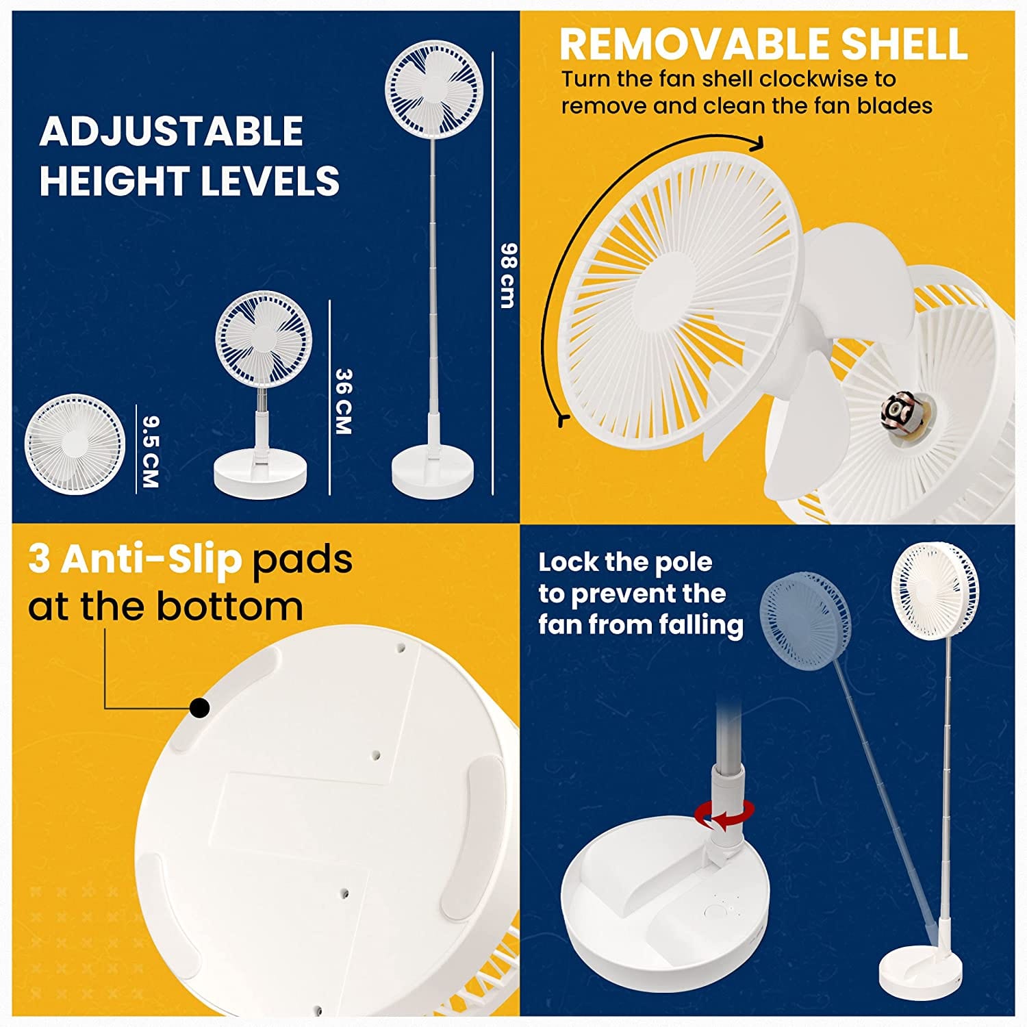The compact size makes Swify™️ perfect for on-the-go use, so you can take it to the office, camping trips, picnics, or even use it as a personal fan while traveling. Adjust the airflow according to your needs and enjoy the customized cooling experience. Its sturdy base ensures stability on any surface, preventing accidental tip-overs, and the adjustable head allows you to direct the airflow exactly where you need it.